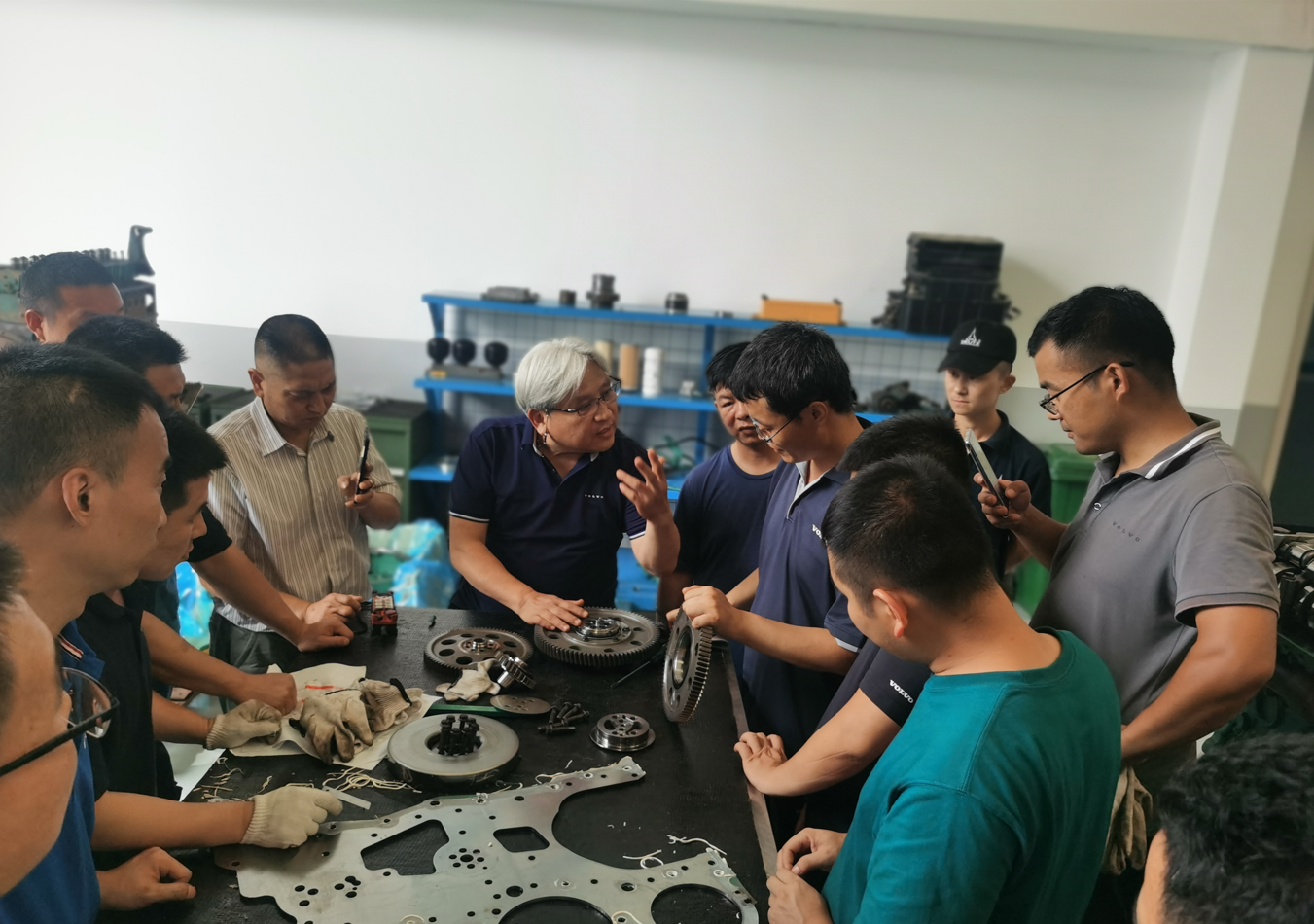 炎炎夏日、熱浪滾滾。7月6日—7日,沃爾沃建筑設備EC950E發(fā)動機正時板更換及EMO61進氣門過橋技改培訓班在濟南天業(yè)維修車間如期開班。沃爾沃建筑設備技術經理孔高威、技術專家Bob與各地經銷商學員們一同參加此次培訓。