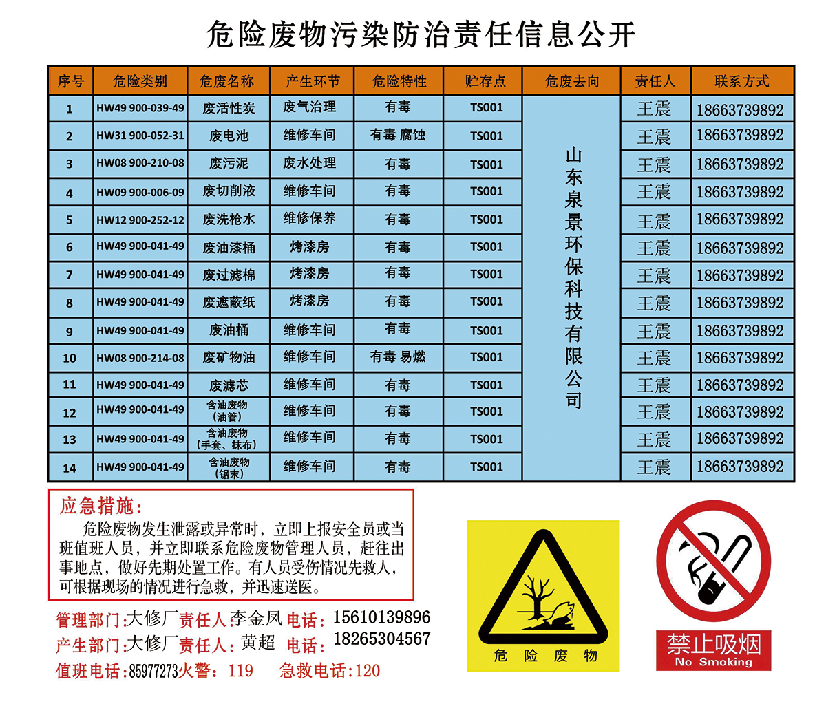 我司根據(jù)危廢應(yīng)急預(yù)案制定危廢管理計劃,同時公示固定污染源排污登記表及登記回執(zhí),詳見附件