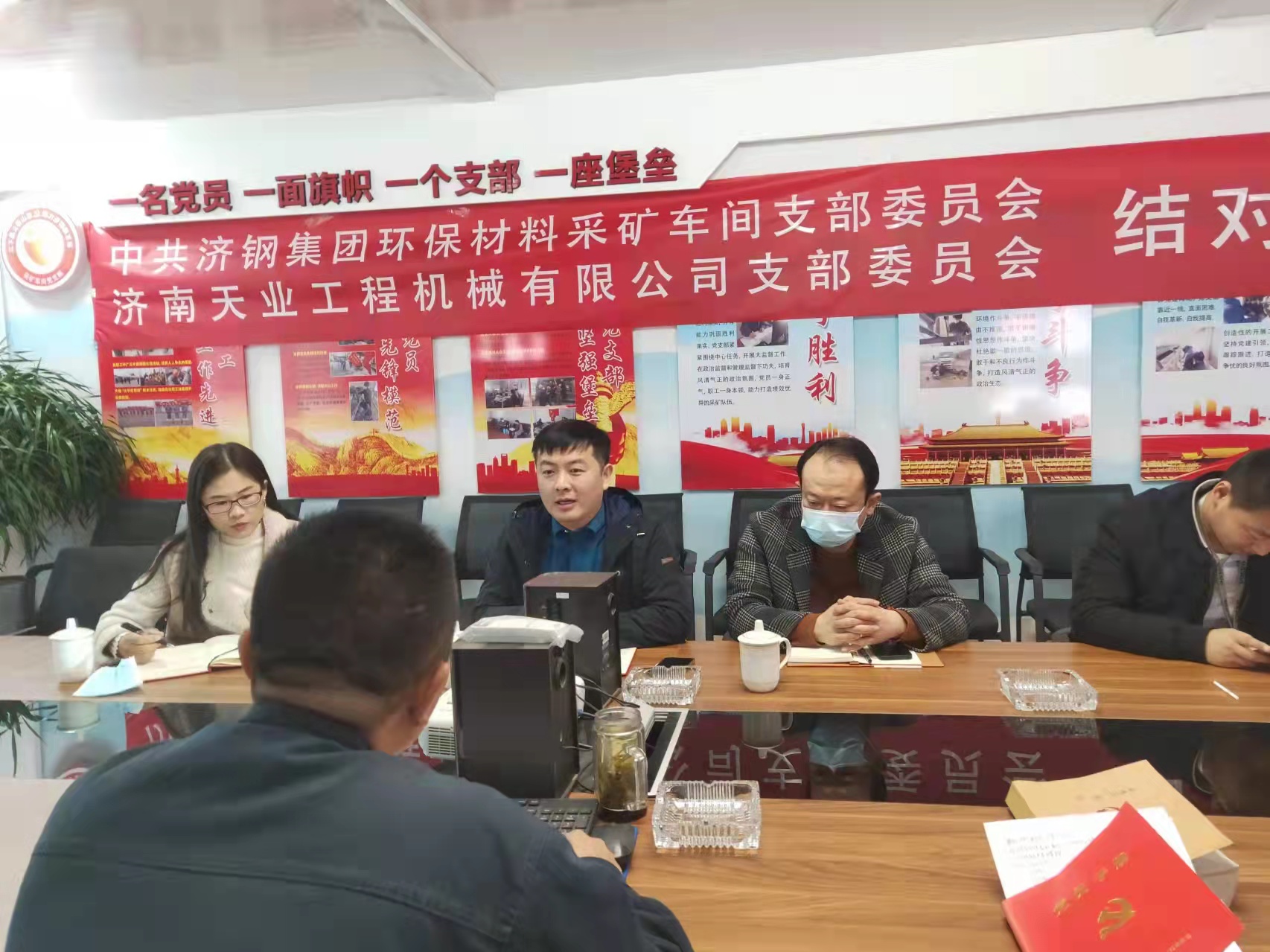 11月25日,中共濟鋼集團環(huán)保材料采礦車間支部委員會與濟南天業(yè)工程機械有限公司支部委員會主題黨日學習會議在濟鋼環(huán)保材料有限公司黨員活動室召開,濟鋼環(huán)保材料采礦車間支部書記鹿傳兵同志主持會議。中共濟鋼集團環(huán)保材料采礦車間支部、濟南天業(yè)黨支部成員參加會議。