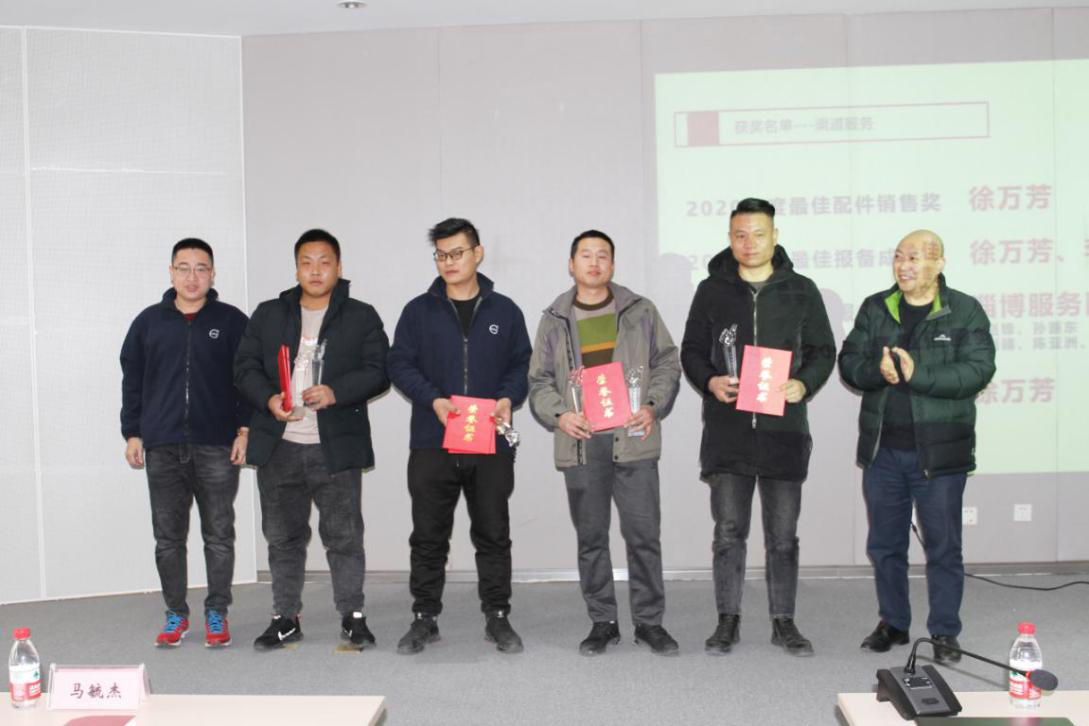 隨后公布了2020年渠道銷(xiāo)售銷(xiāo)量排名、占有率排名,銷(xiāo)售經(jīng)理宗其登獲得年度最佳銷(xiāo)售臺(tái)量獎(jiǎng)、顏秉峰獲得年度最佳銷(xiāo)售占有率獎(jiǎng)、劉濤獲得年度最佳銷(xiāo)售貢獻(xiàn)獎(jiǎng);渠道服務(wù)徐萬(wàn)芳獲得最佳配件銷(xiāo)售獎(jiǎng)、年度最佳報(bào)備成交獎(jiǎng)、年度最佳服務(wù)銷(xiāo)售獎(jiǎng)。淄博、濟(jì)寧服務(wù)團(tuán)隊(duì)獲得最佳服務(wù)團(tuán)隊(duì)獎(jiǎng)。