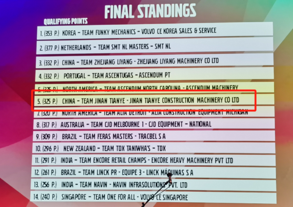 2024年5月8日,坐標(biāo)瑞典,“沃爾沃建筑設(shè)備大師杯”賽場上,來自全球各大區(qū)精選出的14支代表隊(duì)齊聚一堂,為榮譽(yù)而戰(zhàn)。為彰顯一線服務(wù)工程師新生力量,濟(jì)南天業(yè)派出楊靜、張順順、徐曰釗、肖玉雷四人組成代表隊(duì)參賽。在激烈的角逐中,濟(jì)南天業(yè)代表隊(duì)以出色的協(xié)作和精湛的技術(shù)穩(wěn)扎穩(wěn)打,最終榮獲全球第五名的佳績!這是濟(jì)南天業(yè)在此次賽事中的驕傲,也是濟(jì)南天業(yè)服務(wù)團(tuán)隊(duì)技術(shù)實(shí)力的體現(xiàn)。