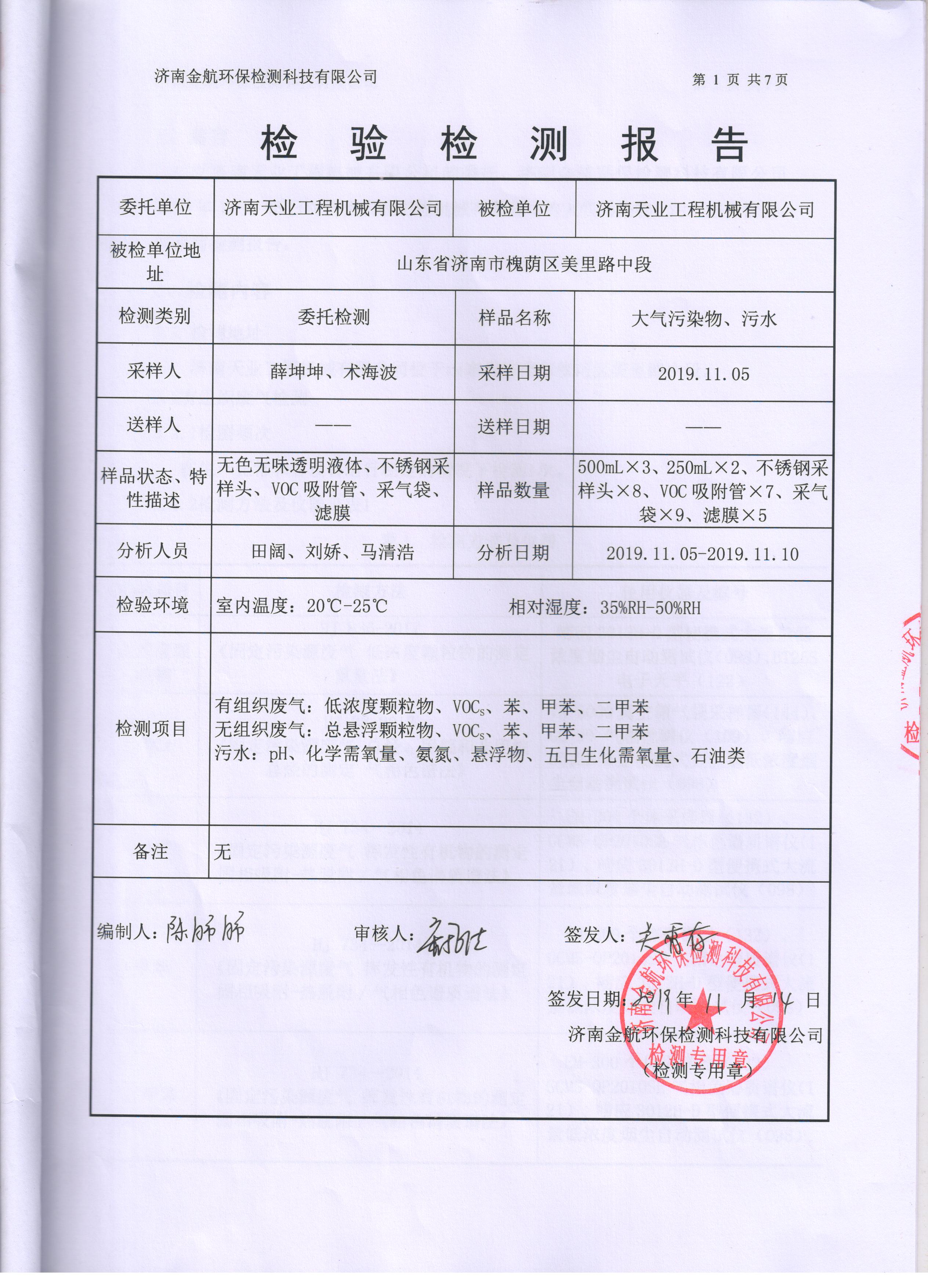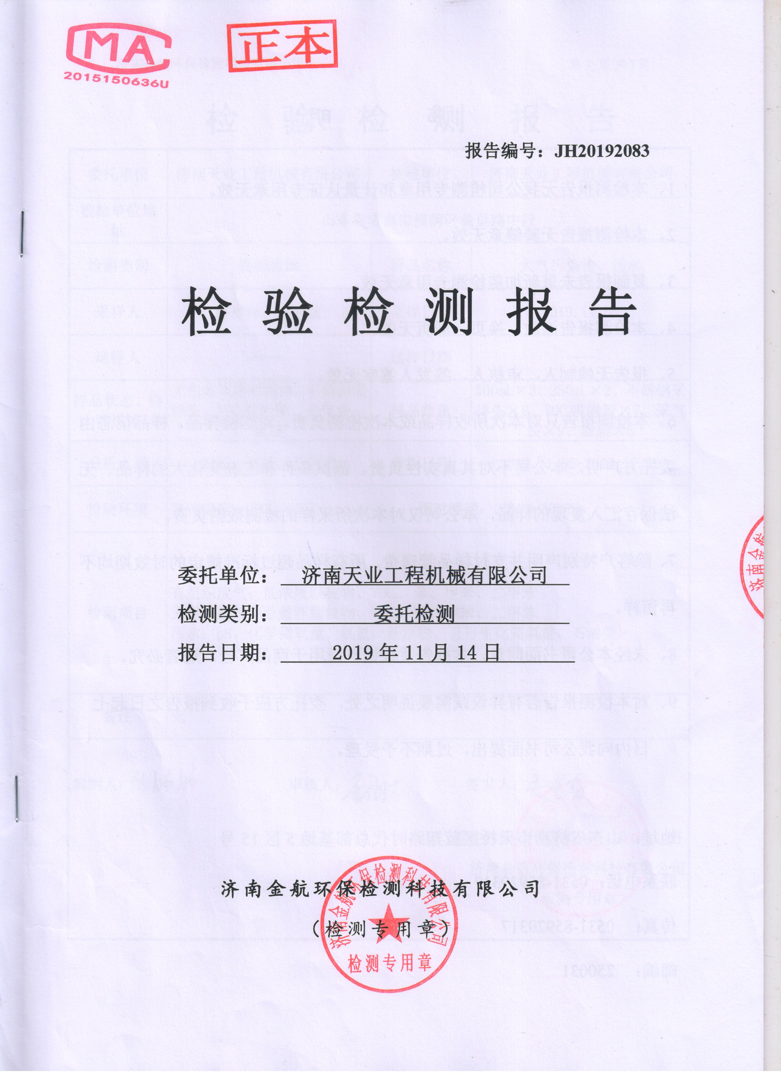 濟南天業(yè)工程機械有限公司檢驗檢測報告公示