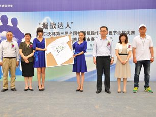 (2013年6月17日,濟(jì)南)“踐行節(jié)能低碳,建設(shè)美麗家園”,為響應(yīng)全國(guó)節(jié)能宣傳周的號(hào)召,為節(jié)能減排貢獻(xiàn)自己的力量,中國(guó)工程機(jī)械工業(yè)協(xié)會(huì)攜手沃爾沃建筑設(shè)備(中國(guó))有限公司在“掘戰(zhàn)達(dá)人”沃爾沃杯第三屆全國(guó)挖掘機(jī)操作手綠色節(jié)油挑戰(zhàn)賽(以下簡(jiǎn)稱(chēng)“掘戰(zhàn)達(dá)人”)山東賽區(qū)城市賽開(kāi)幕之際,宣布啟動(dòng)“綠色操作月”,旨在向全國(guó)超過(guò)16萬(wàn)的報(bào)名參賽的操作手中發(fā)起綠色節(jié)油駕駛倡議,鼓勵(lì)其承諾低碳環(huán)保的工作生活習(xí)慣,在全
